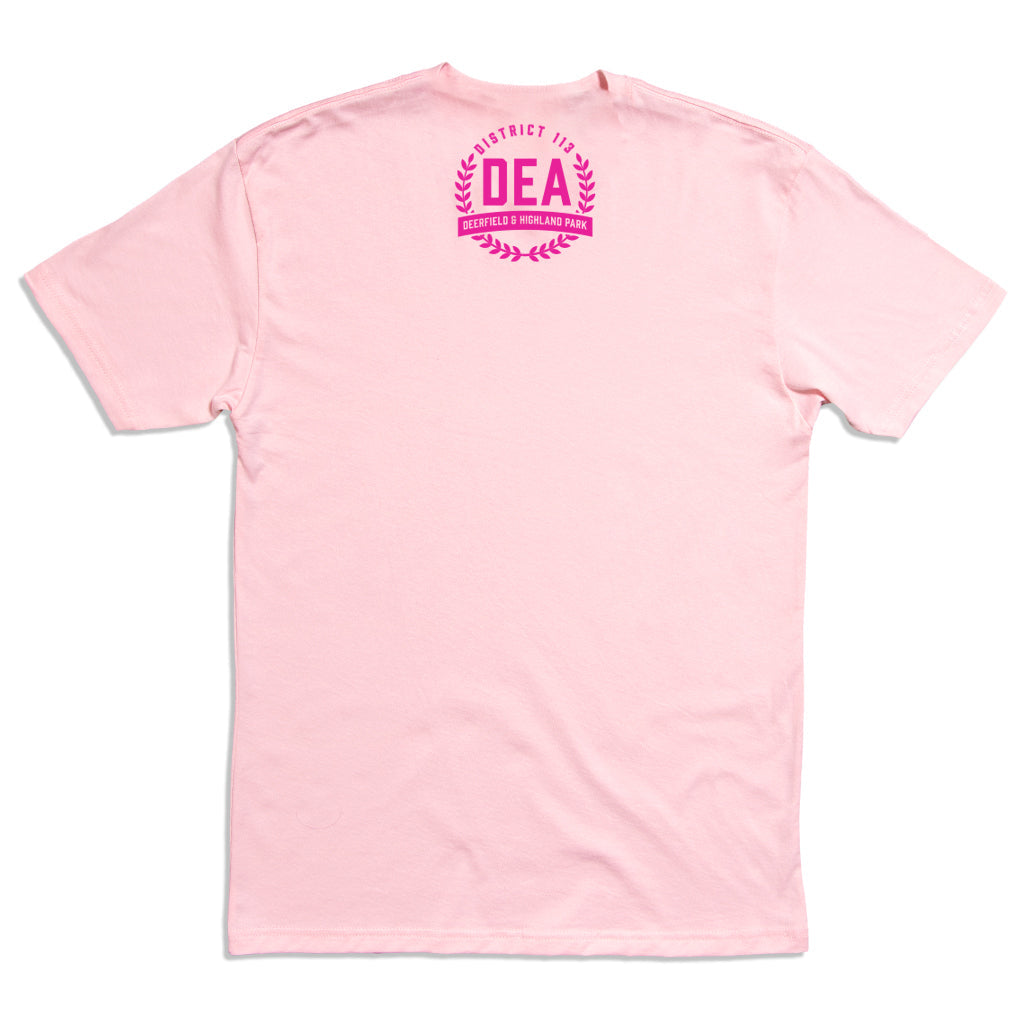 Rhodamine Red on Pink (100% Preshrunk Combed Cotton).