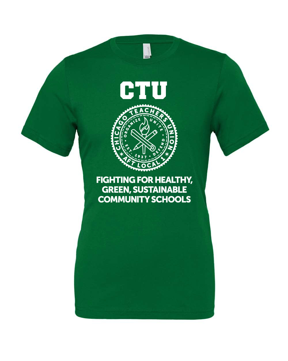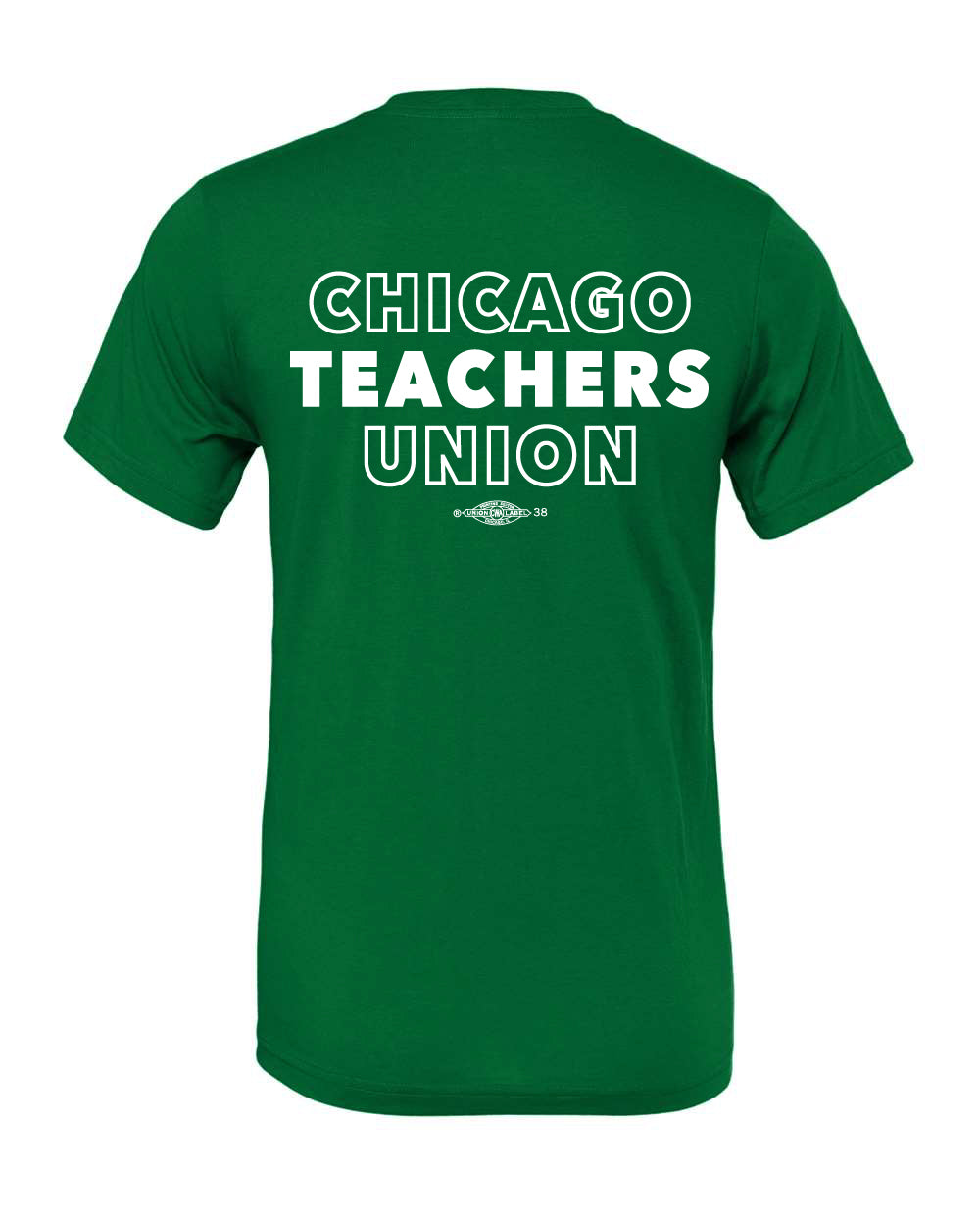 White Ink on a Kelly Green T-shirt (100% Preshrunk Cotton).