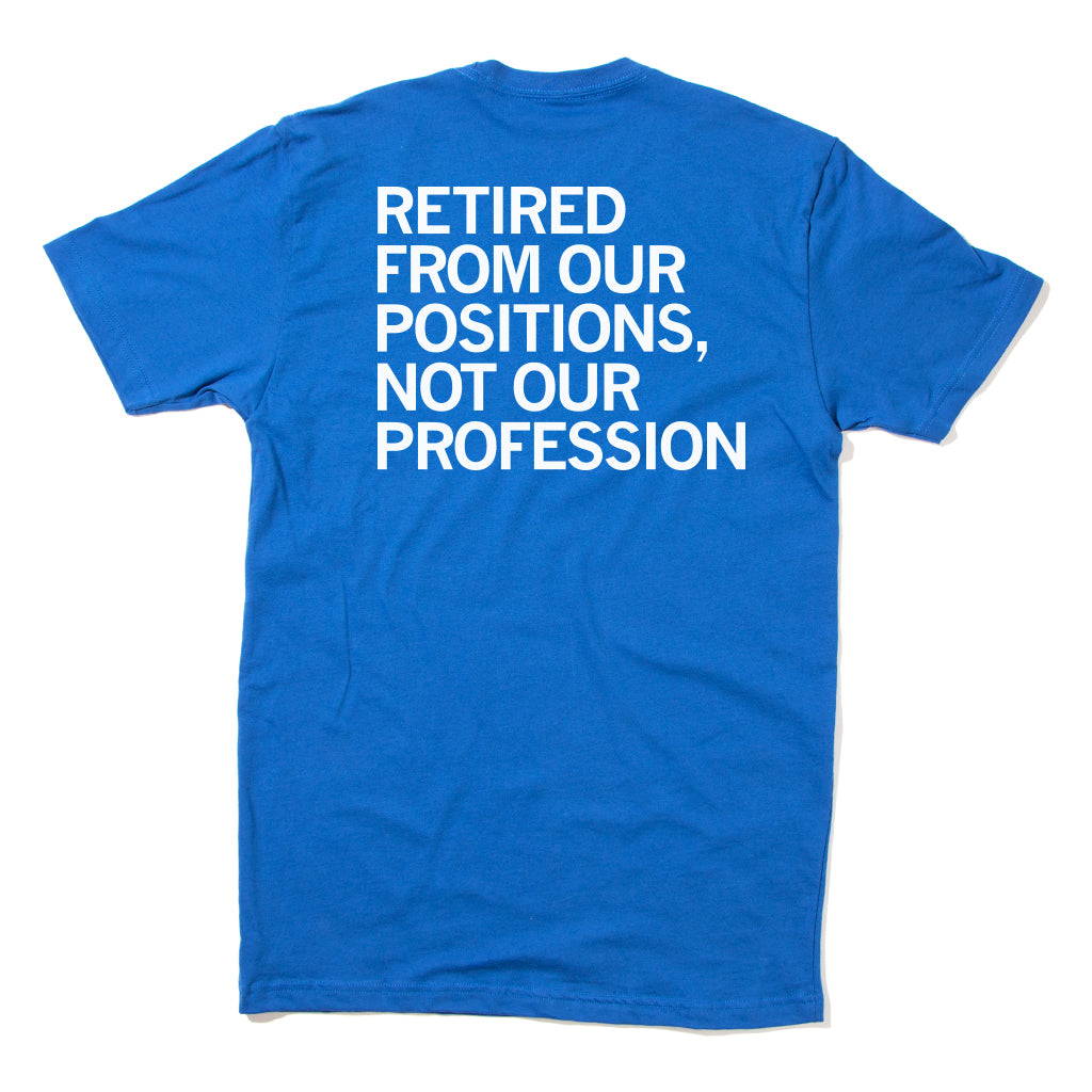 White Ink on a Royal Blue T-shirt (100% Preshrunk Combed Cotton).