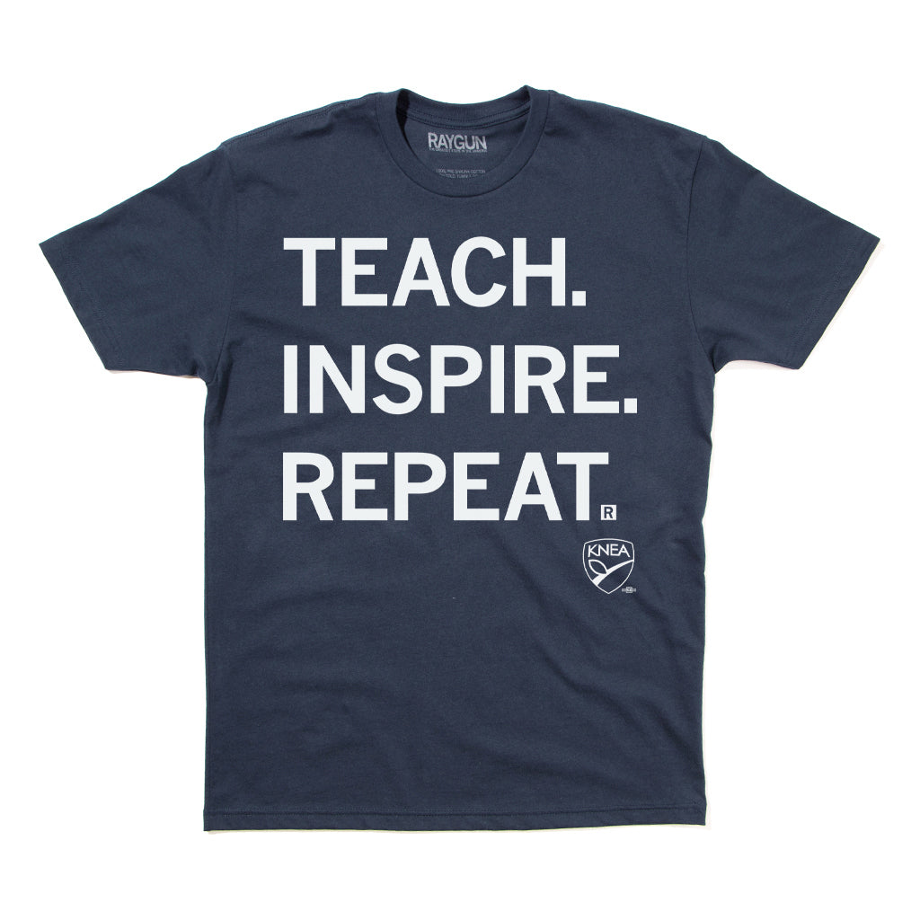 White Ink on a Navy T-shirt (100% Preshrunk Combed Cotton).