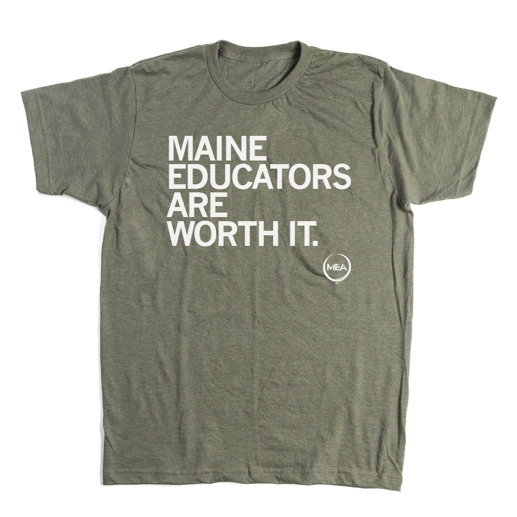 White Ink on a Heather Military Green T-Shirt (65% Preshrunk Combed Cotton/ 35% Polyester).