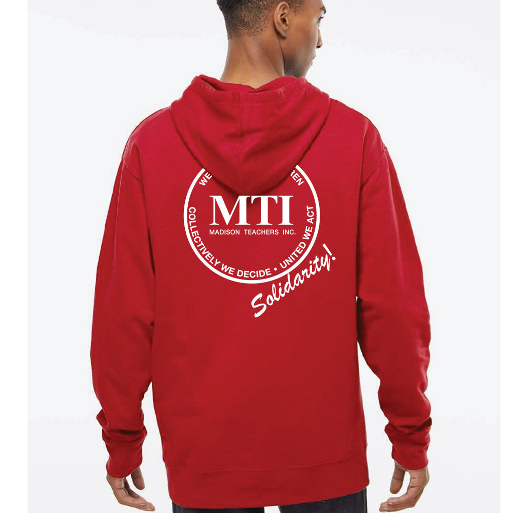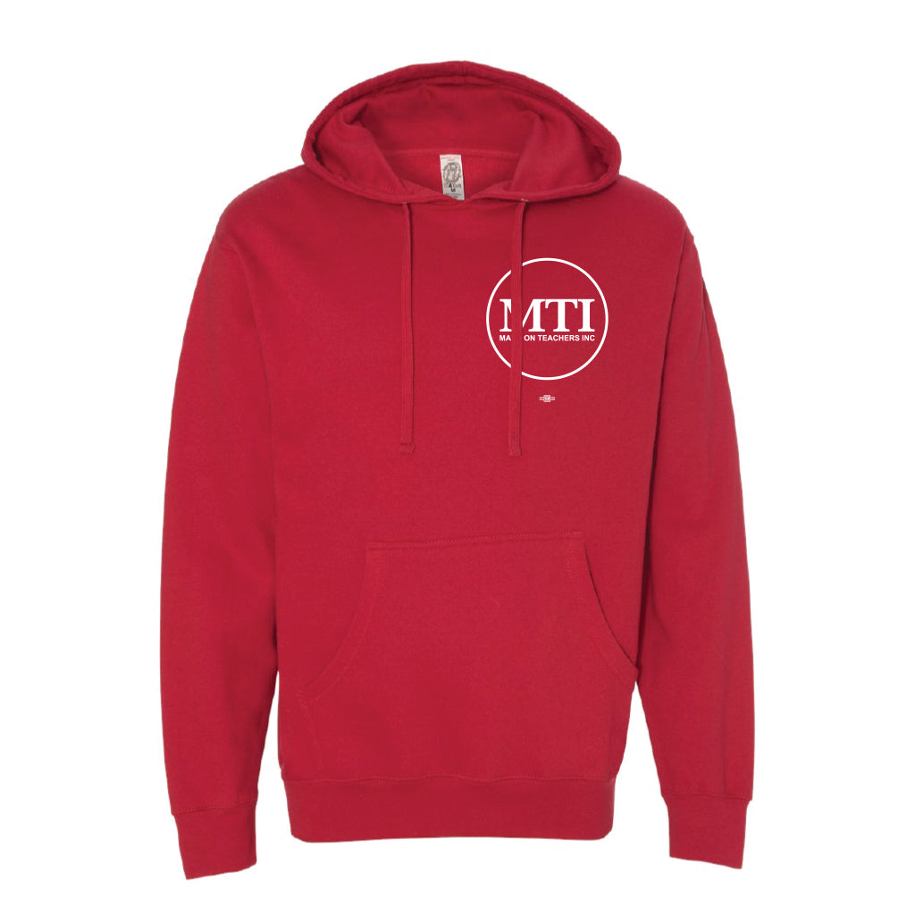 White Ink on a Red Hooded Sweatshirt (100% Preshrunk Combed Cotton).